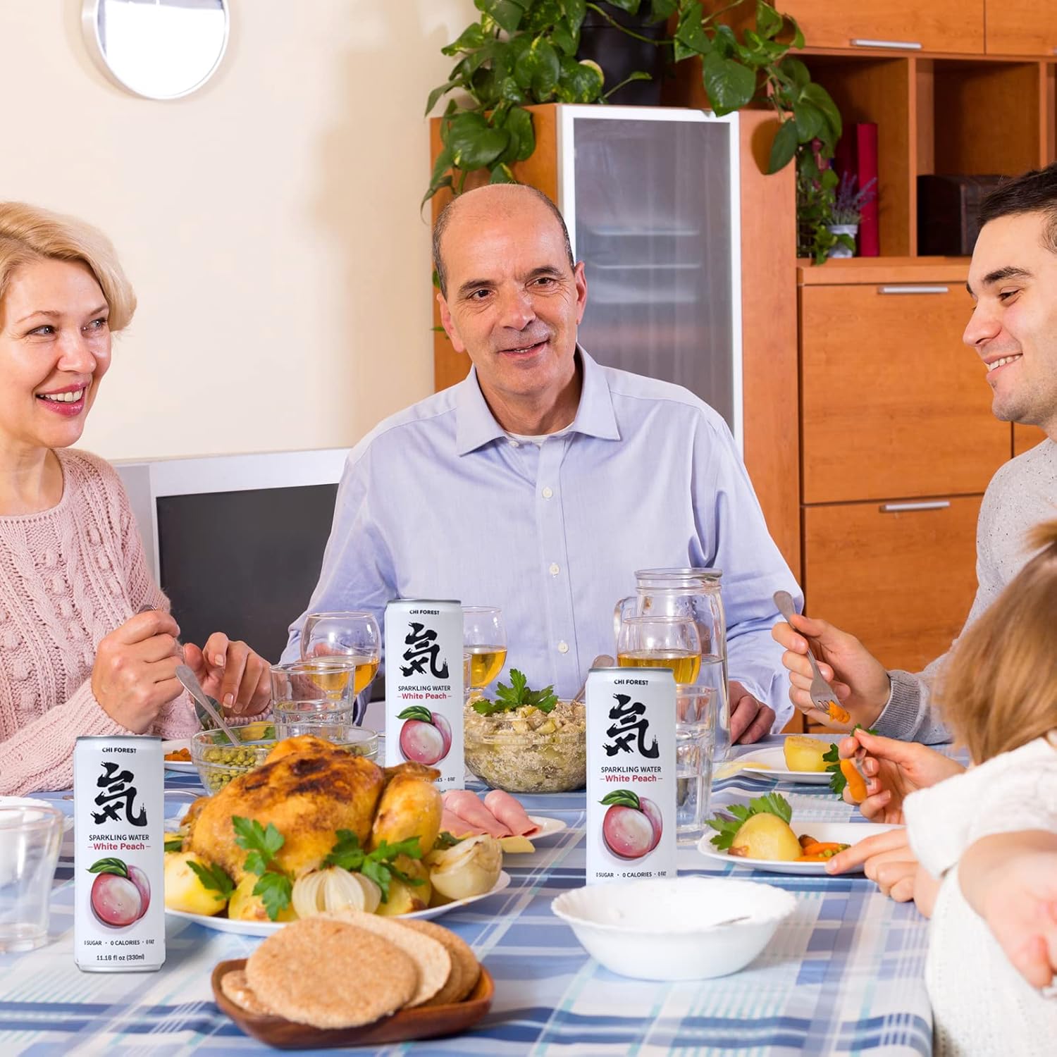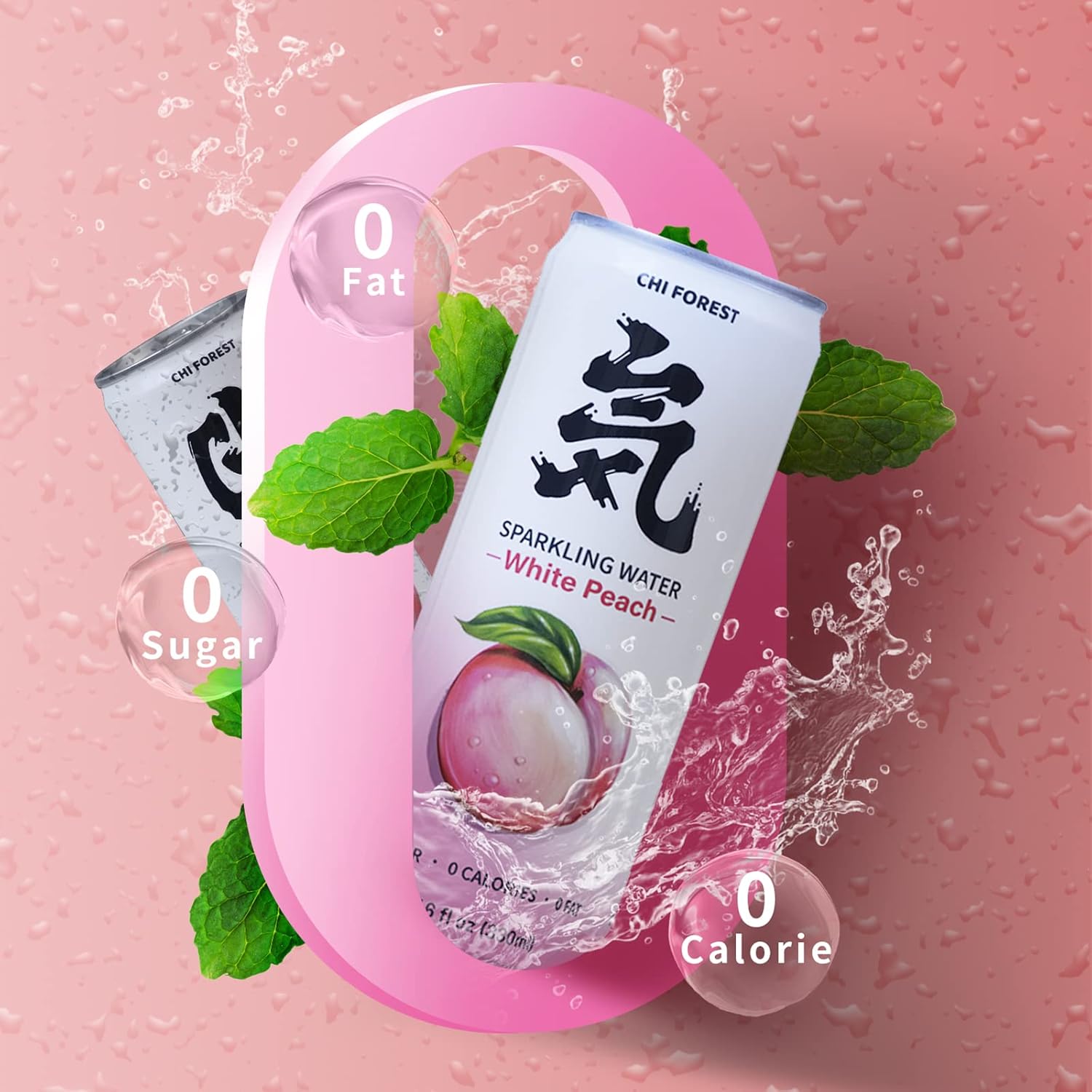 Chi Forest Sparkling Water,Caffeine free,Gluten free,Vegan,0 sugar,0 calories,White Peach Flavor,11.16 Fl oz,24 Cans